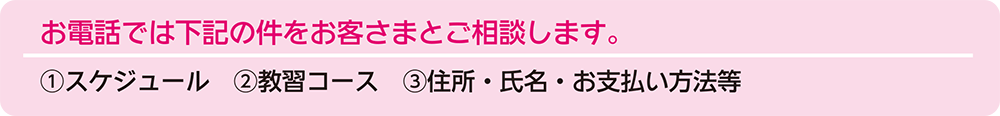 ●株式会社ペーパードライバースクール予約センターにて電話受付します。