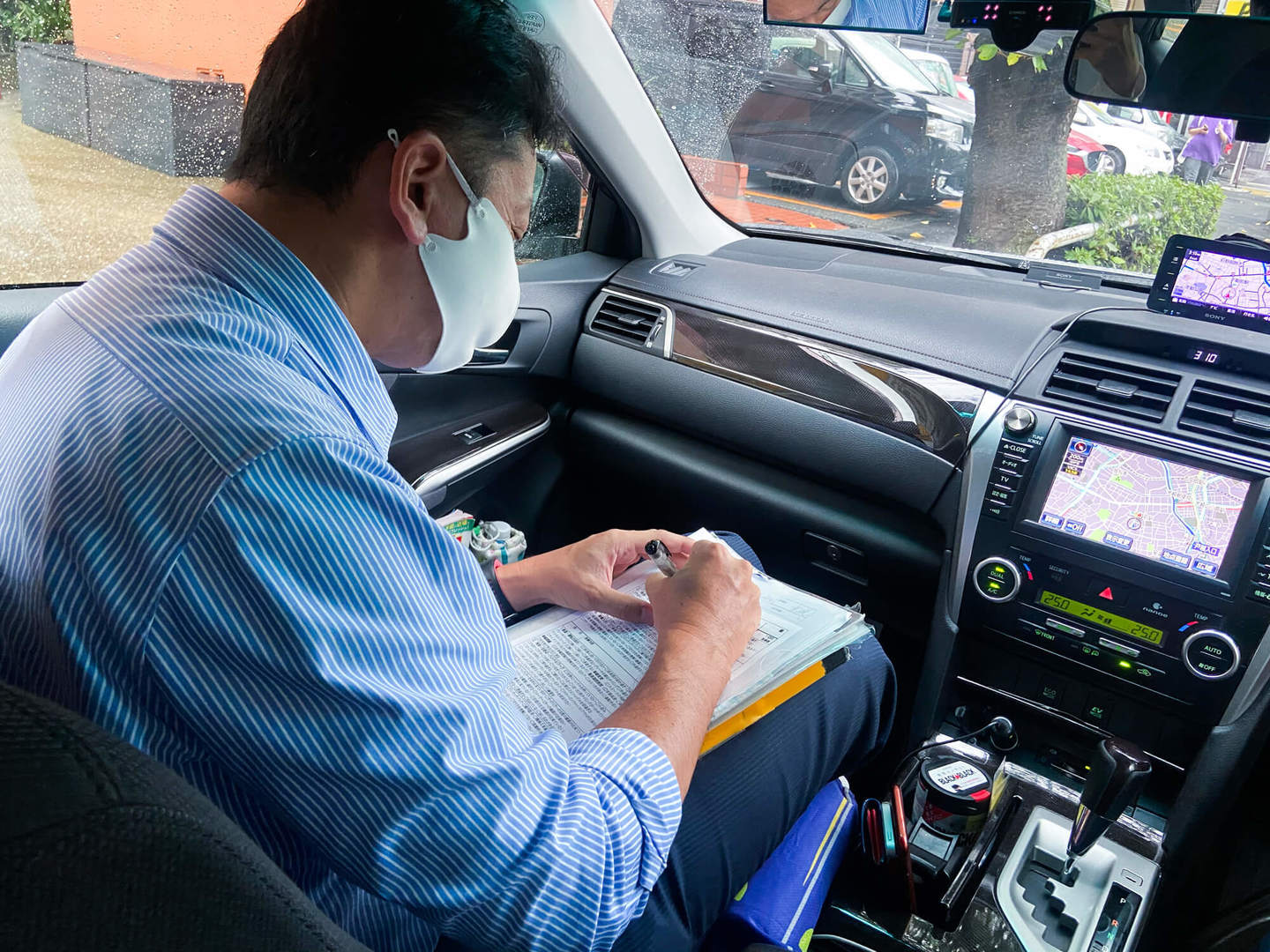 担当の教官は関主税さん。気さくな話し方でとてもフランクな印象。ご挨拶が済んだらまずは、ミラーの角度・座席の位置・ハンドルの高さなど運転席の調整をして、いざ発進。山手通りを通って五反田、桜田通、麻布十番を走行していく。