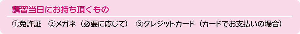●教習前に講習代金(現金またはクレジットカード)をお支払い頂きます。