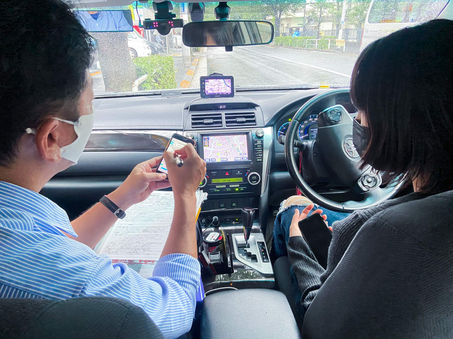 担当の教官は関主税さん。気さくな話し方でとてもフランクな印象。ご挨拶が済んだらまずは、ミラーの角度・座席の位置・ハンドルの高さなど運転席の調整をして、いざ発進。山手通りを通って五反田、桜田通、麻布十番を走行していく。
